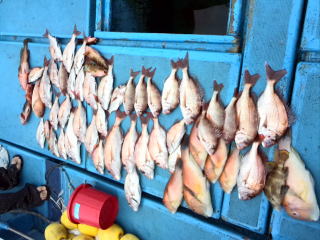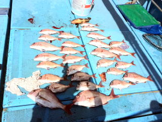 真鯛中〜小鯛23枚、コショウダイ1枚、他ガラカブ、アオナ等 |