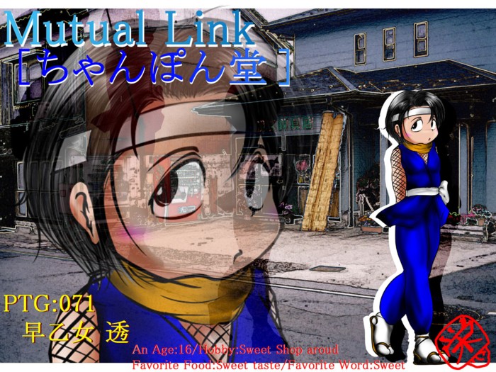 A・Cさんより相互リンク記念に頂きました〜♪ いや〜。久し振りだなァ、相互リンクでイラスト貰ったの。 一応“早乙女透”で検索してそのページで確認したけど。女の子…で良いんですよね? 間違ってたらリンク切られそうだな(^^; 青い忍者装束のせいか、パッと見、可愛い男の子にも見えました。 しかし何で自分がクノイチ好きだってバレたんだろう?(笑) それにしても、キャラの多さに圧倒されます(71番目?) しかもその全てのキャラに設定が入ってるようなので凄いとしか言いようがないですよ。 自分ももう少しA・Cさんを見習わないとなぁ…。 |