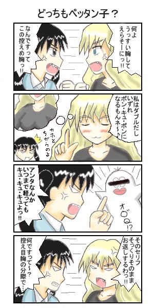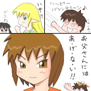 マウス一筋!! PART16!! 適当下書き、適当色塗りな4コマ漫画(汗) 描いた時期冬、なのに水着(爆) じゃりんこチエとか結構好きです(^^; ガーター付けてもパンツは穿くな? 結局誰にあげたんだ!? 前に戻る? 次のページへGO!!