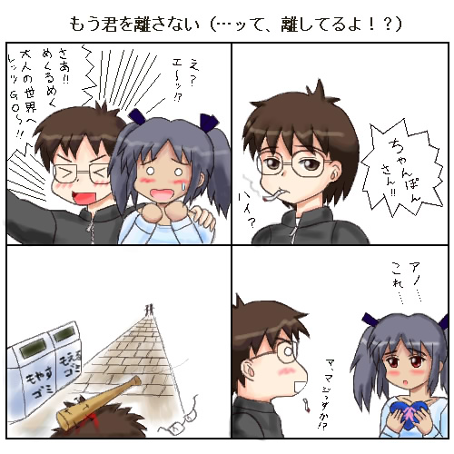 マウス一筋!! PART21!! 犯人は○○ちゃん(謎) パンツ ボーイフレンドの一人や二人…って真ん中の奴誰だーッ!? 端っこに何か居るのは木の精です アチーよ〜(汗) 前に戻る? 次のページへGO!!