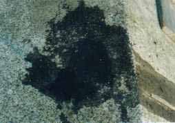 通り矢の堤防はすぐに判った。岸壁の中央に くの字 の格好で突き出ているからだ。行ってみると人は付け根部分に3人ほどのグループと先端付近に親子連れがいるだけ。はて、ここは超人気のポイントのはずだけどもどうした事かいな、と思いつつふと見ると黒い墨汁をぶちまけたような痕が其処ここにある。おお、これは噂に聞く墨痕ではないか。しかも古いものではなさそうだ。間違いなく、極めて最近ここでアオリイカが釣れたんだ。何処ぞのホームページで読んのだが、新しい墨痕を見つければ半分は釣ったも同然らしい。がぜんやる気が充満しはちけれそうになる釣四郎であった。