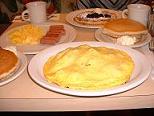 やっと目の前にお皿が。。と思ったら出てきたオムレツは皆の目が点になるほどの大きさ!卵を3つも使っているとか?!