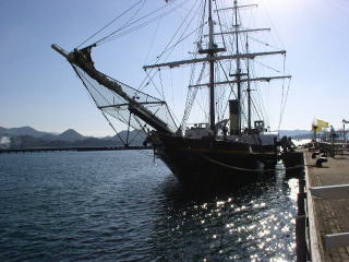 停泊中の帆船、観光丸。ハウステンボス港内を一周するアトラクションでもある。 ハハはこれに乗りたかったらしいのだが、2月中は休航とのと。残念。 ハハちゃん、あったかくなって船が動くようになったら、乗りに来ようね。 |