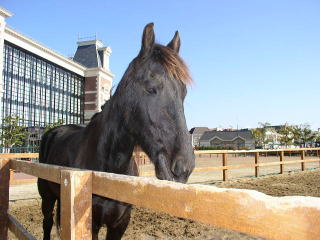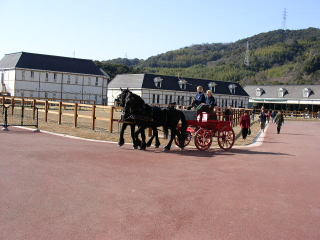 前回来たときにはなかった施設、フリーシアンホースランド。 園のスタッフが訓練用の馬車を引かせているところに偶然遭遇した。 |