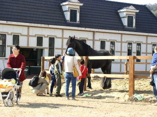 こうやって馬に実際に触れられるほか、騎乗体験も行われている。 |