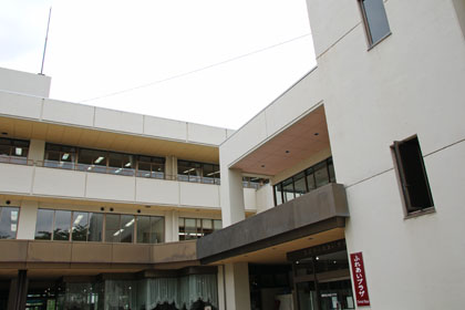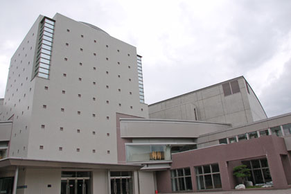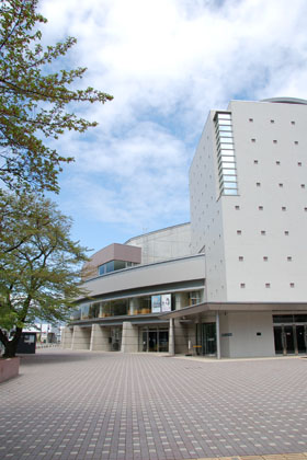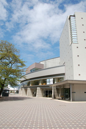 「レザンホール」こと塩尻文化会館でした。 実は、地方感覚なら管理人の自宅から「近所」と言って良い距離だったりします(笑) [地図で見てみる] ('08.05.03 追加) ここはその後も、第33局[決着]で、会場の描写として登場しています。 鶴賀学園の睦月と佳織が立っている扉絵は、楽屋口。 そして、衣が会場に戻ってくる描写として…、