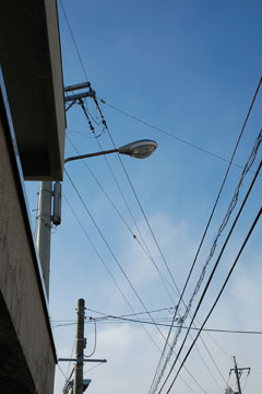('08.06.08 追加) 第5巻 P5 冒頭カラーの街灯。実は、レザンホールの隣の塩尻市役所の渡り廊下前です。「会場周辺の描写」という設定でしょう。