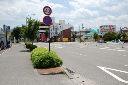 ここは、実はつぶれたパチンコ屋の駐車場で、今は有料駐車場となっているところ。 廃業中のために、作品中に描かれているように白塗りのままの看板というわけです。 (2011.5.15追記 現在、このビルは既に解体されていて、撮影が出来なくなっています) [地図で見てみる] 読んだ時に、「きっと登録商標の関係で塗りつぶしているだけで、本当はデパートの看板か何かに違いない」と思っていたのだけど、まさか本当に白塗りの看板だったとは(笑) ('08.07.12 追加) 第4巻 P8の巻頭カラーの背景も、ここから撮影されたものです。