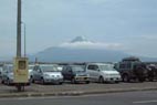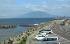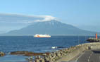 香深港からの利尻岳 | 民宿の窓からの景色 フェリーが 行き交います |