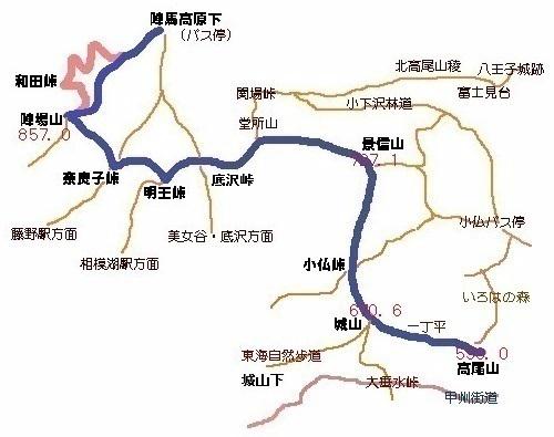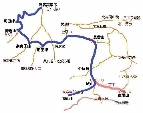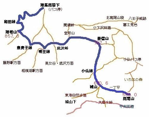 ●2009年5月9日(土) 「2009春 高尾・陣馬スタンプハイク」に参加して、1号路・登り口→高尾山山頂→小仏城山→城山下→JR相模湖駅までの山道(約12.0km)を縦走(トレッキング)しました。さすが、人気の「高尾山」(標高599.2m)です。山頂は、「関東の富士見百景」のひとつで、富士山(北東面)を望む事が出来ます。