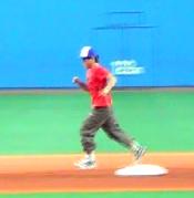 | 試合内容はひどいものでしたが、今回もたまたまフィールドランニングがあったので参加しました。対象は小学生なので、なるは最初で最後です。りょうは前回で慣れたのでからり楽しんでました。前回踏めなかったホームベースもしっかり踏んで、疲れもなかったようです。 |