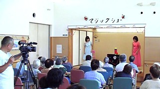 | とあるデイケアお年寄りの前ででマジックショーを行った様子を、九州放送の「未来の主役」という番組が取材に来ました。テープは1時間以上回していたと思うのですが、5分番組だそうで、なるがどれだけ写るか、当日の雰囲気ではちょっと厳しそうでした。8月2週目にテレビ東京系の全国ネットで放送です。 |