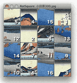 RotSquare is a puzzle like well-known 15-puzzle. However, pieces move as if the game board is a torus.