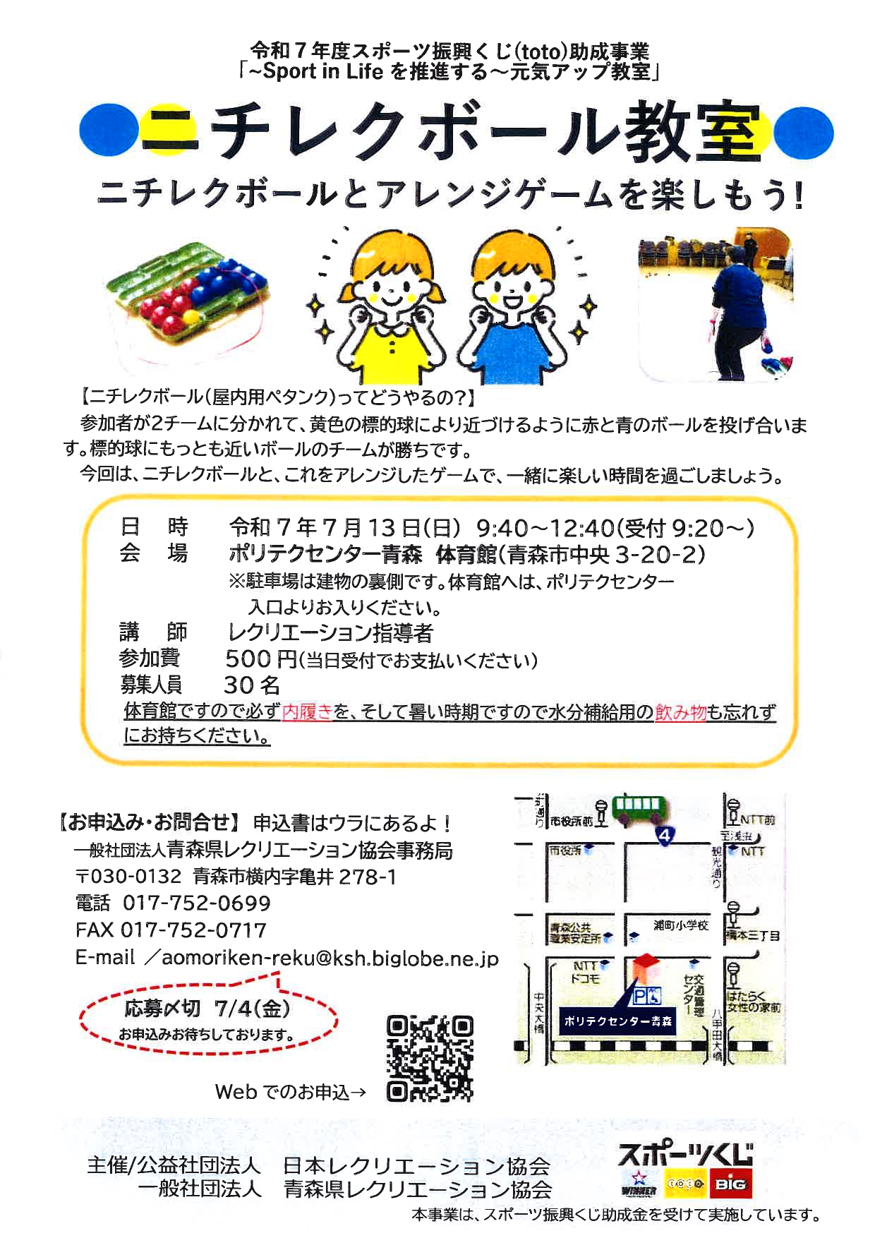 〇令和7年度(一社)青森県レクリエーション協会 フォローアップ研修のご案内