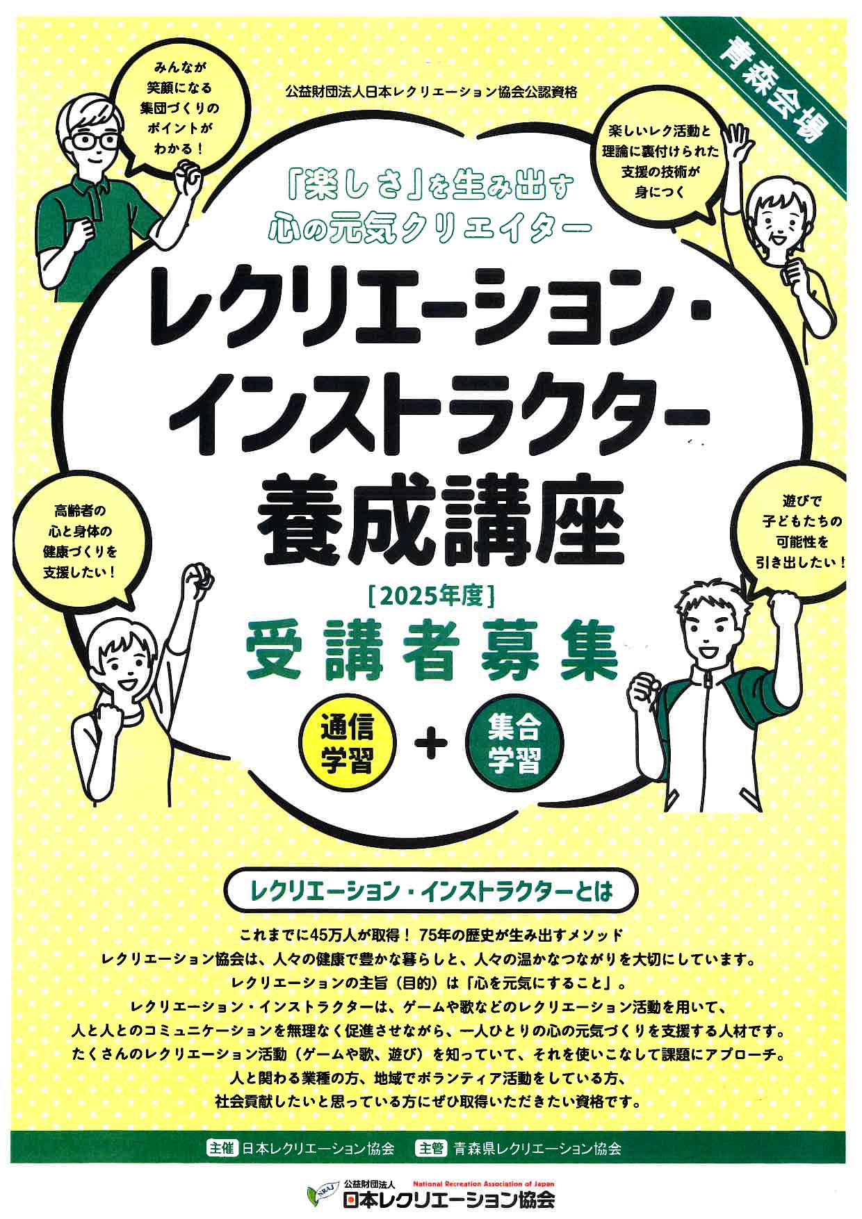 対象者:青森県内のレクリエーション指導者 及び レクリエーションに興味のある方