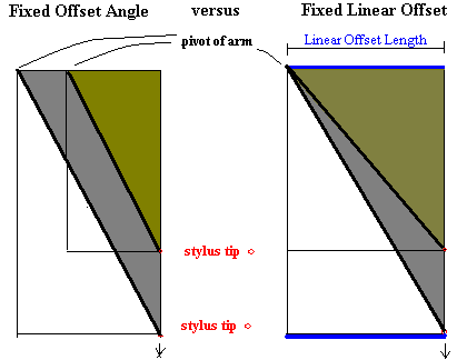 Tracking angle at specific groove radius - Fixed offset angle = Error angle at specific groove radius. |