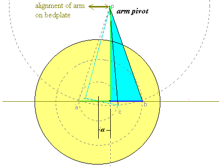 Explanations of drawing: the arc of radius L is tracking with pivoted arm while the arc of radius r is groove .
