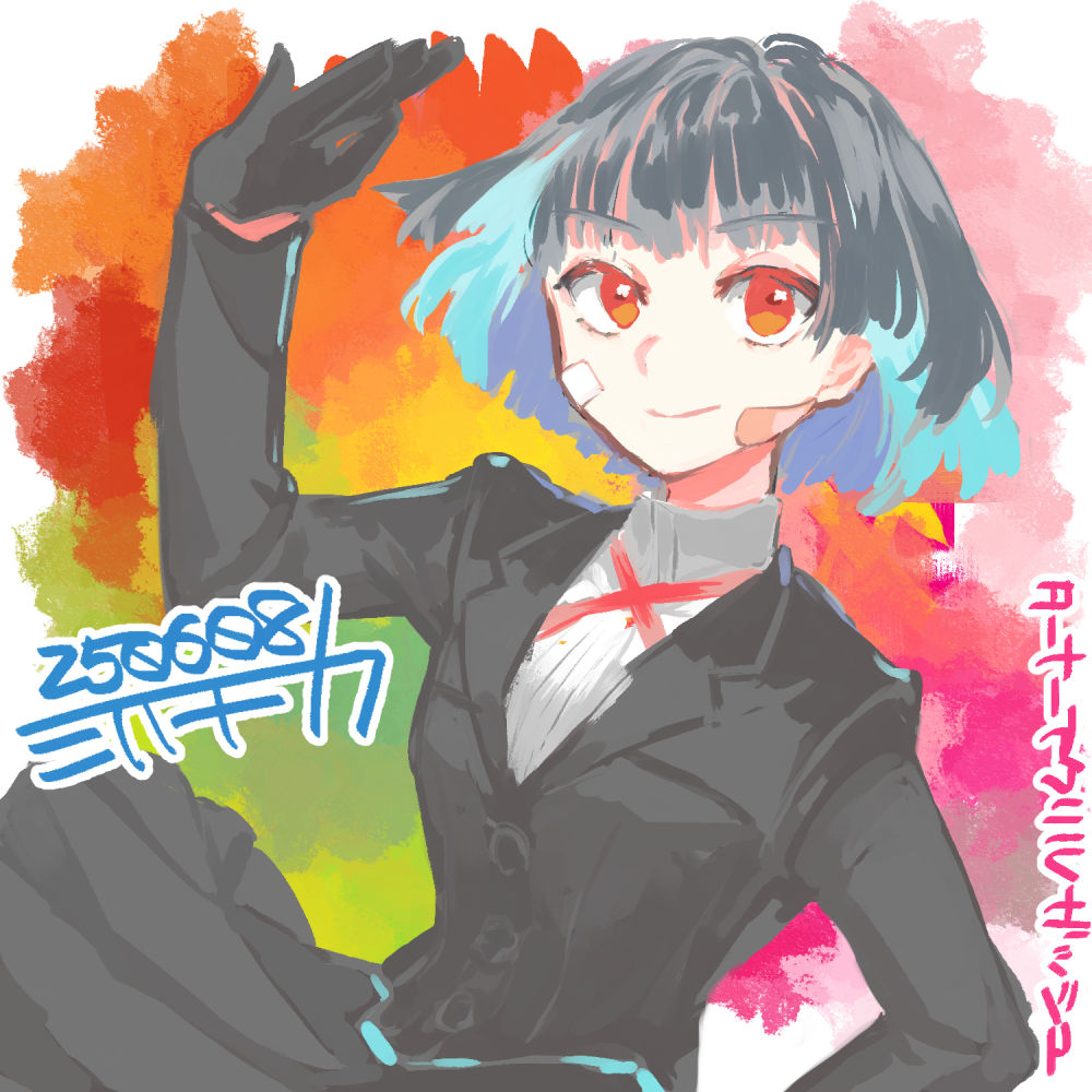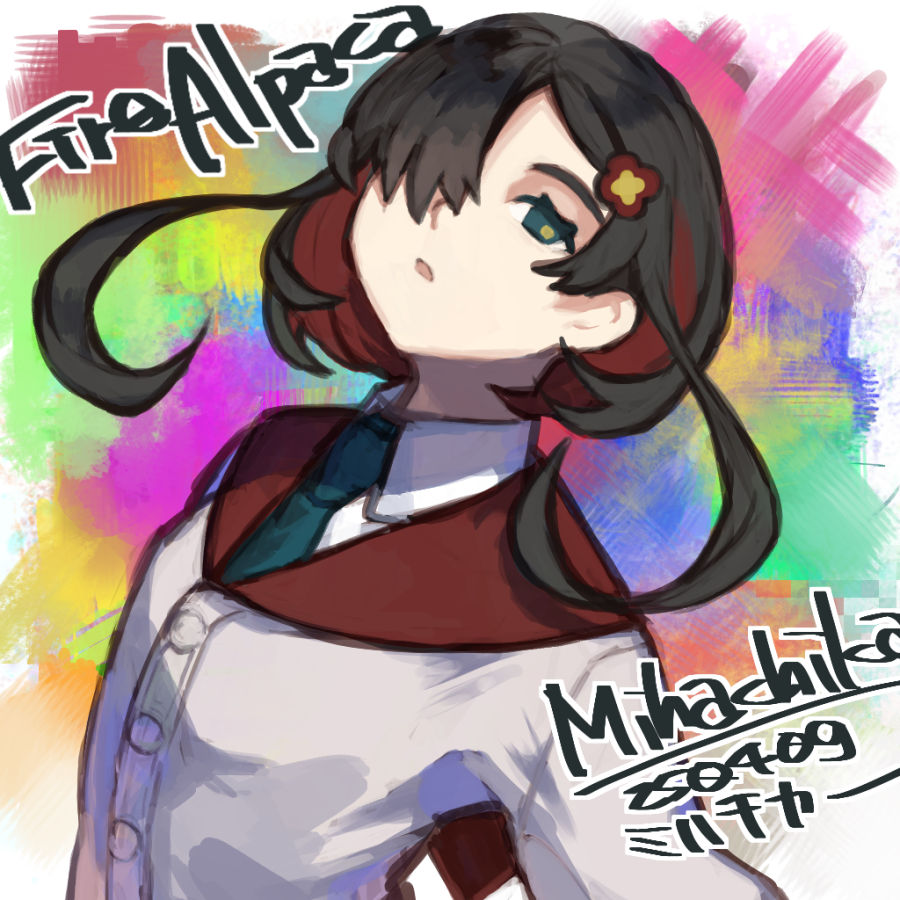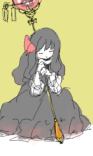 おっとりして大人びている、幼い印象、画家のまたは幼稚園のスモック、好きな色、実家の家紋アレンジ、和風のエッセンス、ショートブーツ、リボン、インナーカラー、目隠れ …
