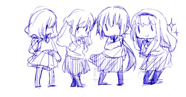 確かお正月の三が日、ボールペンでらくがきをしてるときでした。「ここにもう一人いたほうがバランス良くね…?」という閃きによって3人組は4人組になったのです。