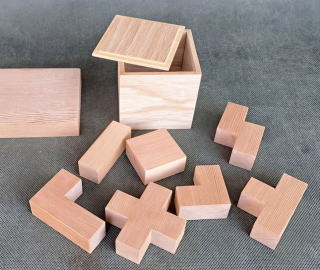 玩具シリーズ第8弾 数個の立体小片を組み合わせて所定の容器にぴったりと収納するパズルです。 木工仲間がヤフオクで木のおもちゃセットを手に入れましたが、子供のおもちゃを想定していたら、説明文は「ボケ防止に最適な木製パズルセット」だったとのこと。 考えてみたら人生終盤ではみんな子供に戻っていくわけですから、子供用も老人用も差はありません。 ・・・というわけで、「転ばぬ先の杖シリーズ」でもあります。 → ![]() ボケ防止になるならと、早速コピー品を作成してみました。 在庫をチェックしたら24o厚で幅100oの松?材があったので、それを使いました。 加工は特に問題ありません。 丸のこテーブルでカットして、軽く面取りし、艶消しウレタン塗装しました。 容器の箱は5.5o厚の合板で、側面の留継ぎ加工は90度トリマービットを使いました。 しばらく自分で遊んだら、若返った(数週間分?)気がして、それに解をすっかり覚えてしまったので、孫のAちゃんに委譲です。 |