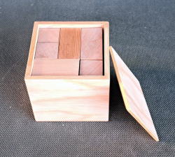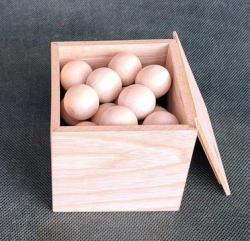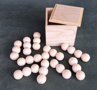 | (2026/01/27 追記) 今回箱に充填するのは積み木ならぬ”串団子”です。 オリジナルは団子の直径が20oで、1本の丸棒から木工旋盤?で削りだしているようで、3連が8組、4連が2組で合計10組の串団子が内径67oの箱に収まっています。 ![]() → ![]() コピー品を作成するに当たり、問題は”団子”をどうするかですが、自作するには専用工具は持っていないし技術もありません。 そこで、安価な既製品がないかと、ネットで”木球”、あるいは”木製ビーズ”で検索した結果、下記を見つけました。 直径25mm×5o穴×20個で送料込みで248円 <因みにこのサイトでは直径が4〜25oで16サイズが揃っています> 全部で32個必要なので2セット購入しましたが、届いたものをチェックしたら直径は約24o弱で穴は6oでした。C国製でこの価格ですからこれは想定内です。 団子は既製品を使うわけですから、作成は前作以上に容易で団子に串を指して接着するだけです。 収納する箱は現物合わせで作成し、内寸は77oとなりました。 遊んでみると前作と比べて格段に難しく、若返り度も週から月単位にアップです。 |