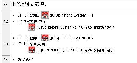 破壊する場合はフラグ『F10_破壊』をONにして下さい。条件に識別IDの変数を加えると、そのIDに合致する文字列のみ破壊する事が出来ます。
