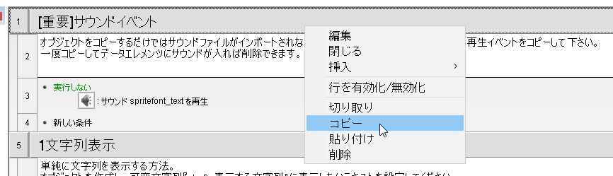 一度コピーしてデータエレメンツにサウンドが入ればイベントは削除できます。