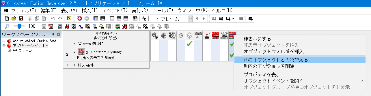 イベントエディタにて旧オブジェクトのアイコン上で右クリックし『別のオブジェクトと入れ替える』を選択します。