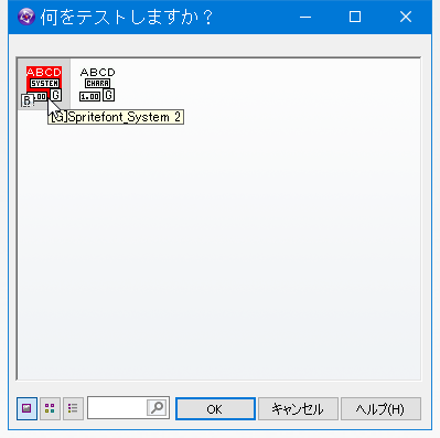 ↑ウィジェットのmfaを選択して『spritefont text』を選択してOKをクリック。