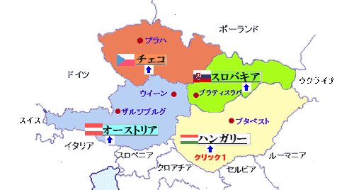 次の地図の↑の示す国名をクリックして下さい。旅行記のページに切り替わります。