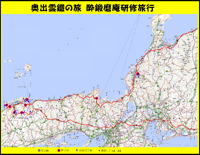 出雲の『神在月』の時期に実行することにして、出発を11月10日(日)の3時頃と決めました。車中1泊、旅館・ホテルに4泊する旅です。およそ2000kmの旅になります。