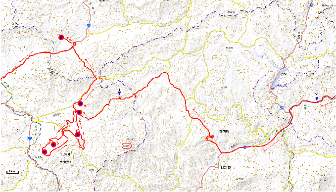 上の地図『ア』が日野川上流部での砂鉄採取地(乗越橋)、『峠1』が『大入峠』 『峠2』が『万才峠』。『万才峠』を越えることで『船通山(1142m)』の西側に抜け、『斐伊川』に入ります。此処が今回の旅の大きなポイント箇所です。ここは奥出雲 田盆地、『八岐大蛇』の伝説の有る場所です。