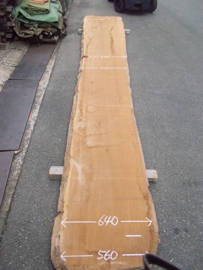| \1,870,000(税込) 5300*天面幅600〜960*62 (木口割れを含めて総丈5630の場合は、幅560mmとなります) 目の細かいミャンマーチークで、600mm幅が取れる貴重な材です。 | |||