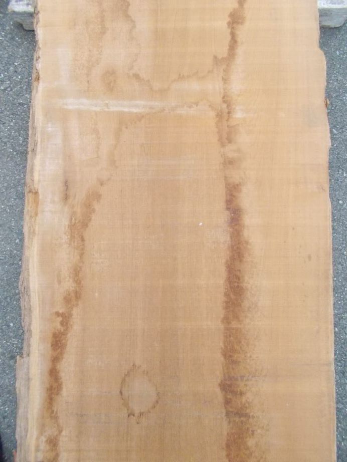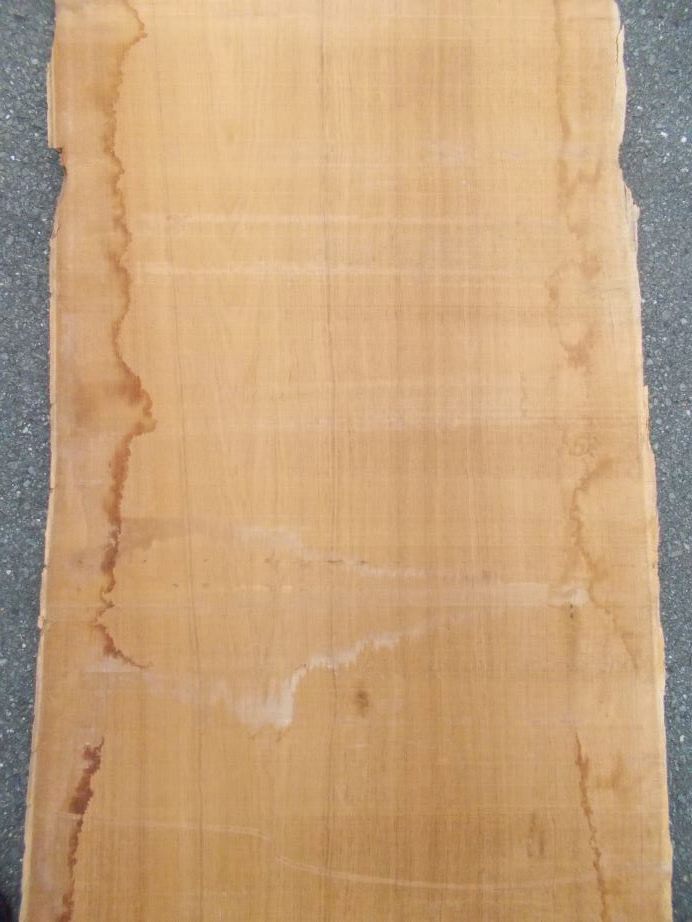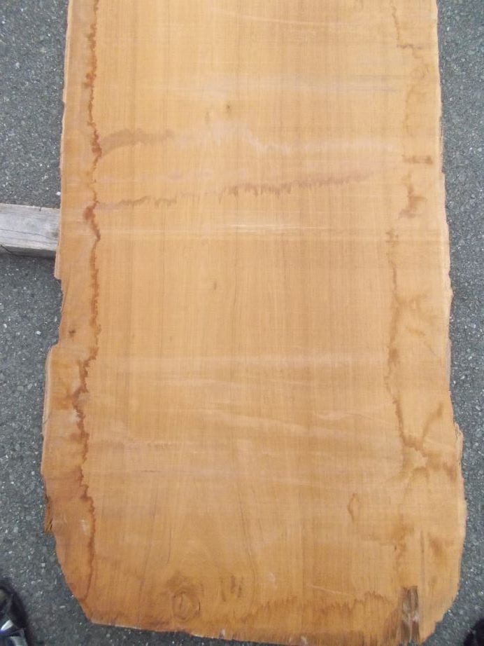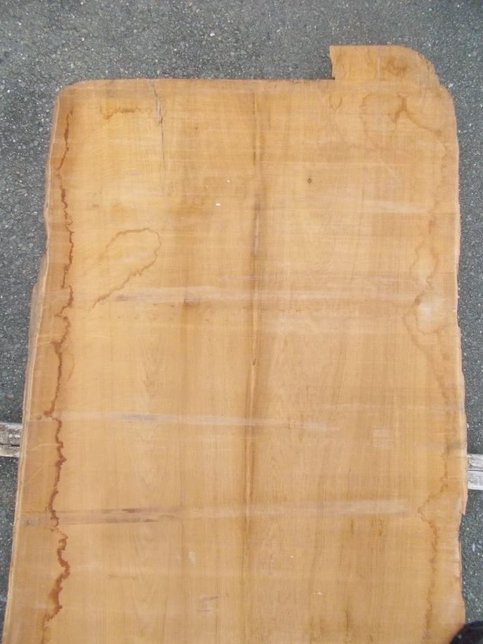 | おもて面 (葉節や打ちキズがあります)    おもて面拡大 (葉節や打ちキズがあります) | 裏面 (芯割れがあります) 裏面拡大 (芯割れがあります) | ||