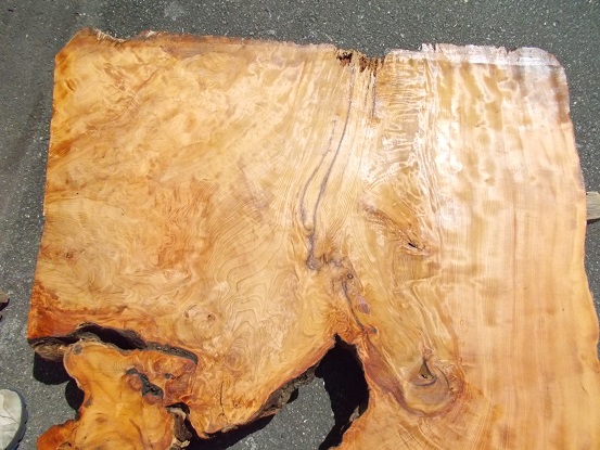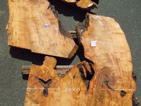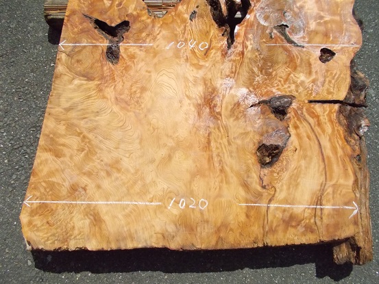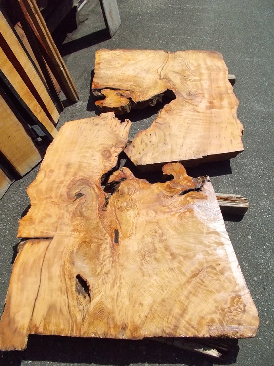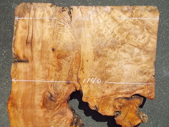 \275,000(税込) 2枚継ぎ 2550*1020〜1200*60 とても面白く 荒々しい感じのする屋久杉のテーブル用です。 共木で似た形の板を向き合わせて テーブル用にしています。  |
