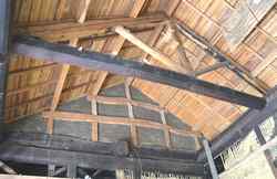 「小屋束(こやつか)」.....母屋からの荷重を梁に垂直に伝える部材。