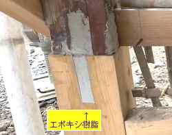 液体のエポキシ樹脂は木材によく染み込んで硬化するので、木材の補強に最適。  補修する部分に液体エポキシを塗布。 染み込む場合はしばらく時間をおいて何度も塗布。