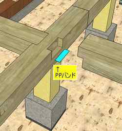 これでは「根がらみ貫」を使わないと束石から床束が外れてしまうのは確実。