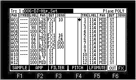 PAN: | Please set the value of PAN. The value of pan of the pad and track is mixed. For example, the value of the pan of a track is R50. The value of pan of a pad is set to MID when the value of pan of a pad is L50. |