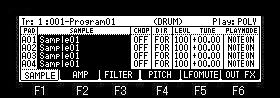 TUNE: | The pitch of a sample is set. (+ /- 3 octave can be set.) | |