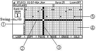 Auto step increment: | If you select YES, after inputting an event by the pad, a vertical marker moves to the right automatically. |