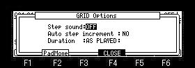 ![]() If the [WINDOW] button is pressed when cursor is in the event field, the window of "GRID Options" will open. ![]() ![]() |