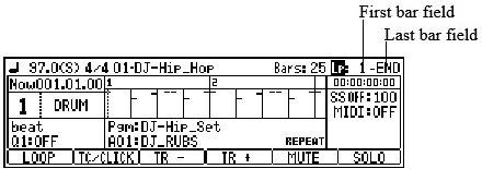 F1 (LOOP) button is pressed during a play of a bar 5.