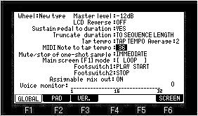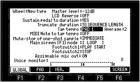 Tap tempo: OFF,TAP TEMPO,PAD1,PAD2,,,,,PAD16