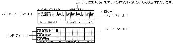 ライン・フィールドにカーソルがあるとき[SHIFT]+カーソルキーを押すとパラメーター・フィールドにカーソルを移動できます。