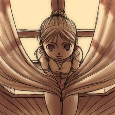 少女(窓際) 一度この状態から窓の外に落ちかけたことがあります |